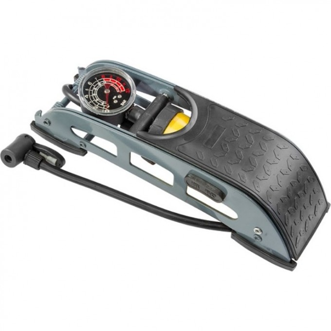 Насос FP-0908 ножной велосипедный стационарный с манометром, цилиндр 48х120мм алюминиевый, шланг с автовентилем, сталь/алюминий