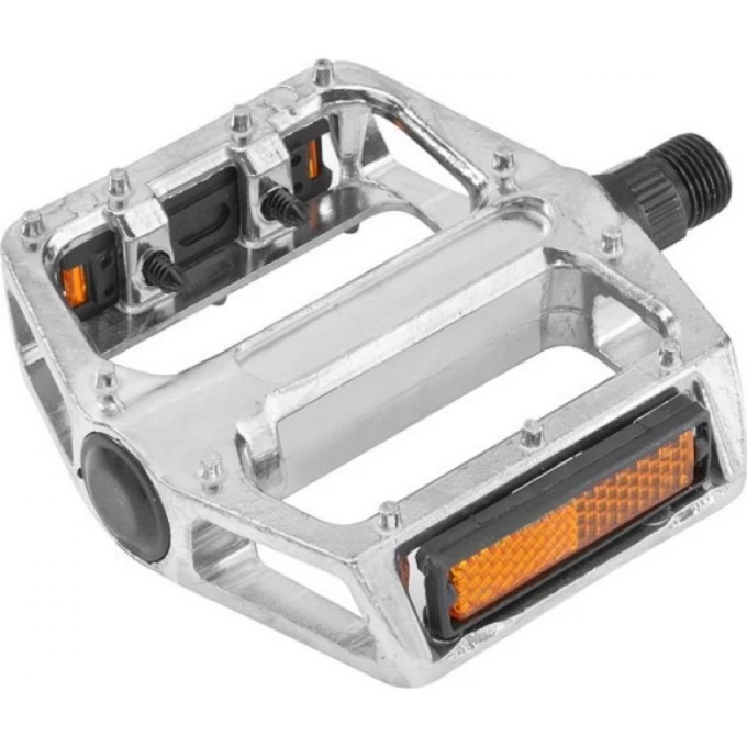 Педали BLF-B4 алюминиевые литые со светоотражателем, ось диам. 9/16", размер 105х100х23мм, серебристые