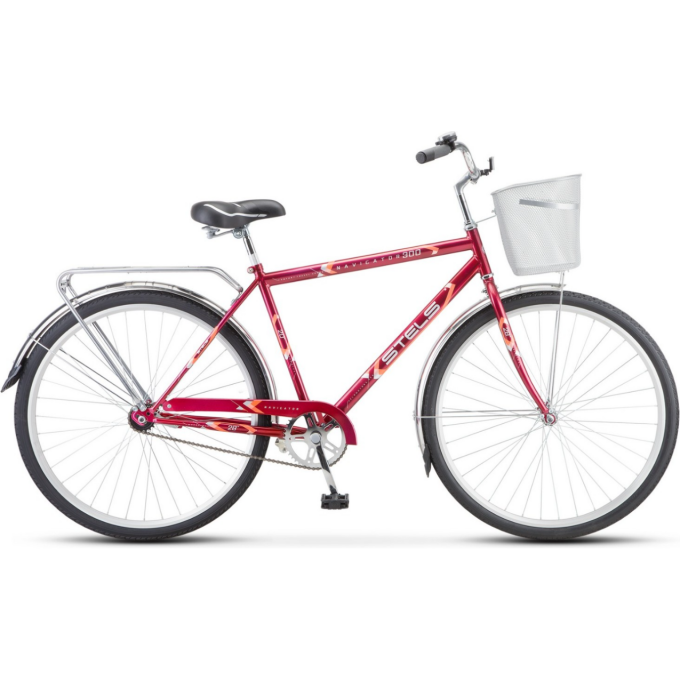 Велосипед STELS Navigator 28" 300 Gent Z010/Z011 (с корзиной) (LU085341) малиновый, 2023 JU000401112022JU0012441